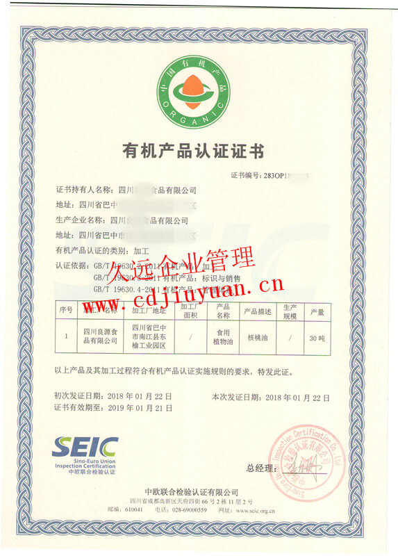 有機(jī)食品認(rèn)證證書(shū)